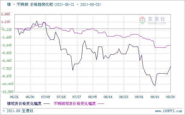 据生意社价差分析工具显示,镍和不锈钢价格基本相似,近期价格小幅上涨。