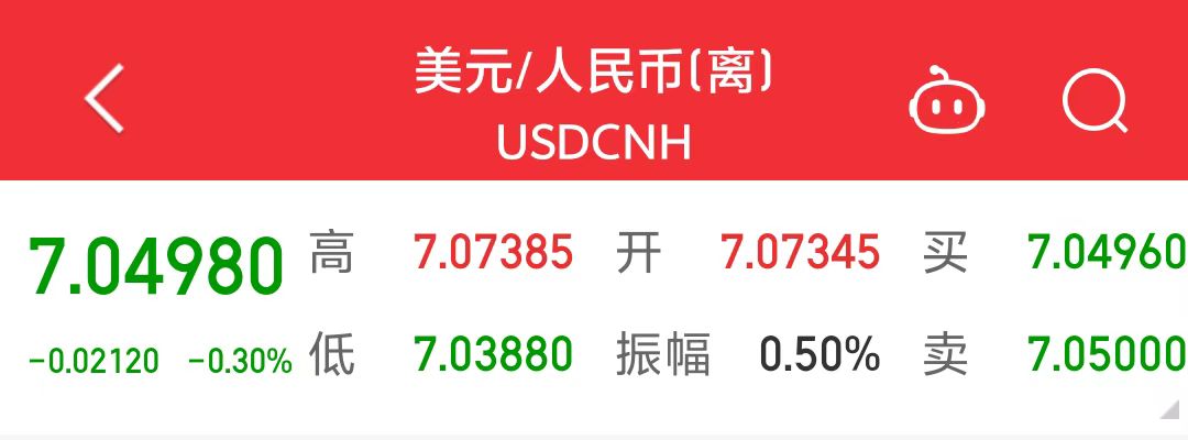 离岸人民币继续大涨,一度升破7.04!分析师:不排除短期内回到6字头的可能