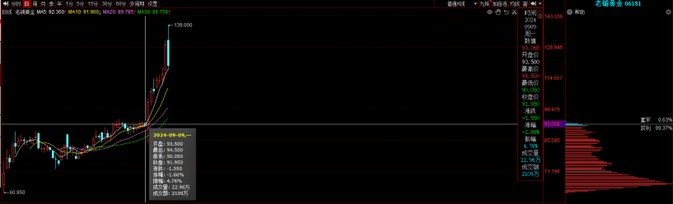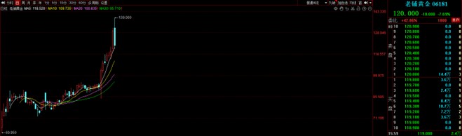 9月20日,此前连续多日创下历史新高的老铺黄金(06181)出现尾盘回调,全天跌7.23%,回吐前一日涨幅,截至收盘报120.6港元。自上市以来,公司股价最高达139港元,相较招股价40.5港元涨幅已高达243%。