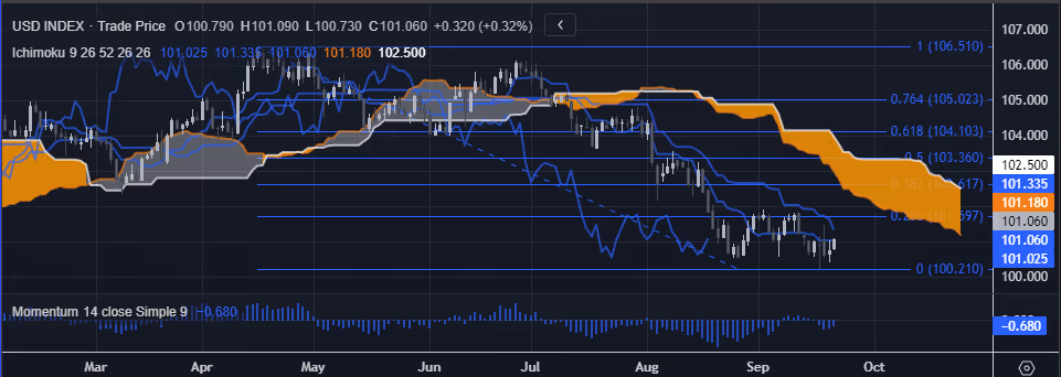 从技术面来看,美元指数上方面临106.51至100.21跌势的23.6%斐波那契回撤位101.697的阻力。若无法有效突破,美元指数可能会继续向下测试100.21的年内低点,甚至跌破100的心理关口。知名机构指出,截至9月17日的一周,投机者持有的美元净空头头寸有所减少,这一情况使得美元指数在近期内缺乏强有力的支撑。