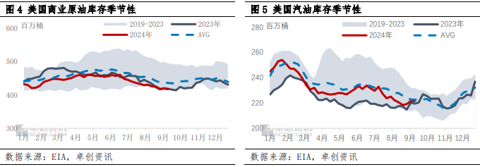 往整体的降息周期内经济环境来看,降息所带来的美元走弱会对以美元计价的原油带来一定支撑,但随着2020年以来美元与原油负相关关系的走弱甚至反转,预计支撑力度有限。但是同时,与降息相伴随的往往是经济增速放缓,甚至触发经济危机等风险事件,因此降息周期内宏观经济的弱化会对国际原油价格形成压制。同时,降息固然有着流动性宽松的预期,但是基于政策效果显现存在滞后性,流动性宽松对原油等大宗商品需求的提振作用也存在时滞,由此年内仍是需求放缓压制油价上涨。