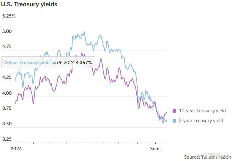 今年债券市场的利率出现了下降,10年期和2年期美国国债的收益率本月和年初至今都有所下滑。周一,10年期美国国债收益率小幅上升至3.74%,而2年期国债收益率则维持在3.576%,数据来源于道琼斯市场数据。