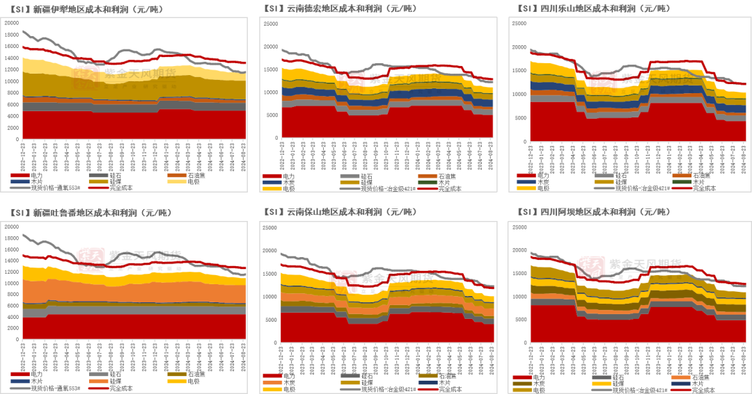 其中,由于丰水期西南生产电力成本有显著下调,亏损情况略好于新疆地区。