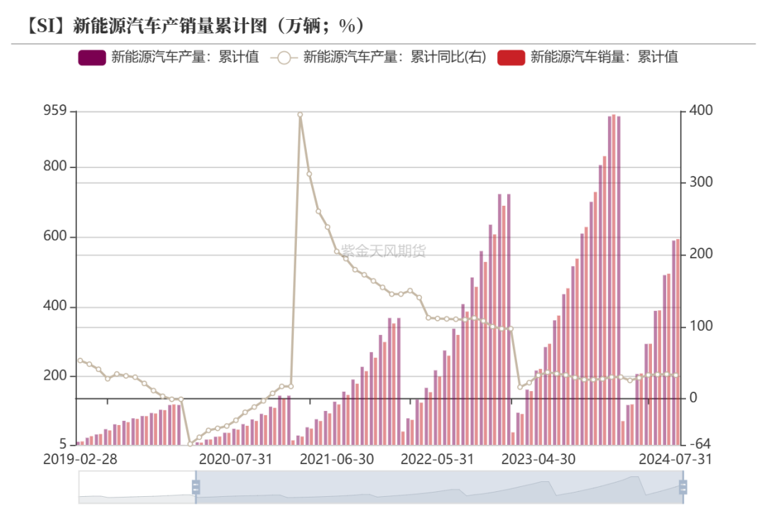 截至2024年8月,多晶硅累计产量达131.6万吨,同比增49.6万吨,累计同比增长60.5%。
