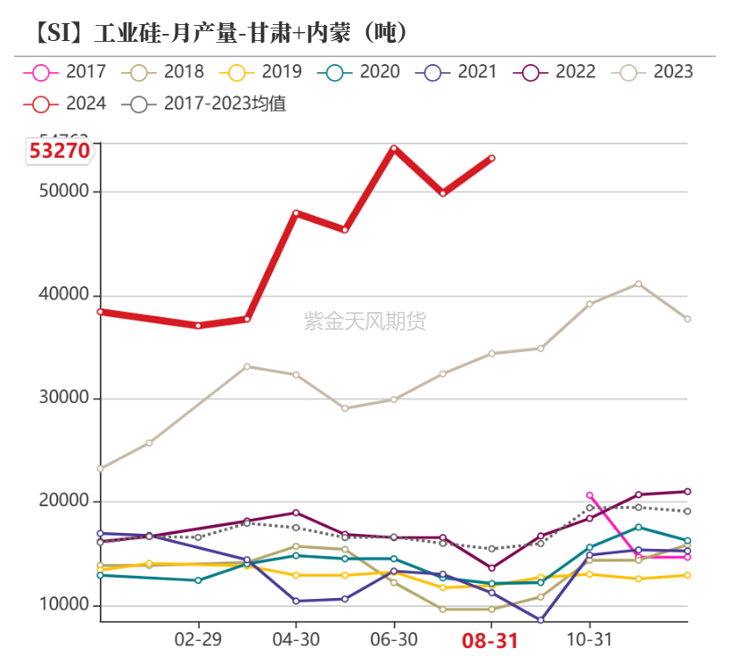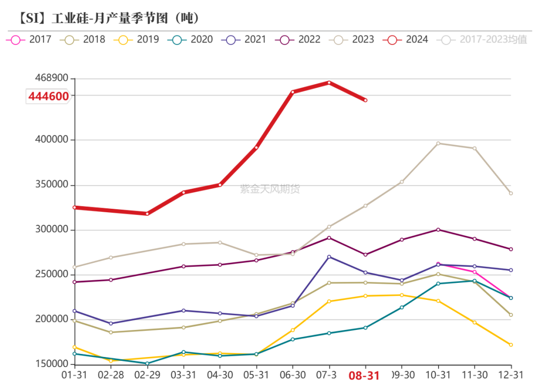 总产量方面,工业硅2024年产量预计达493万吨,同比增长31%。产品结构性方面,由于交割规则修改,市场或将提高对新疆553#产品合规的关注度。
