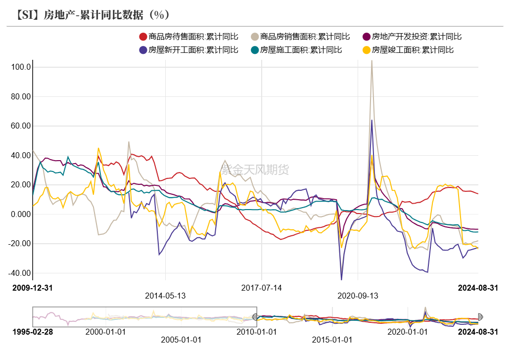 1-8月房地产各项累计同比数据继续传出低迷信息,施工面积降幅同比走扩、土地成交量低于历史均值,新房、二手房价格指数未见起势,尽管竣工、新开工数据尚显企稳,但也并未对有机硅形成直接的需求支撑。