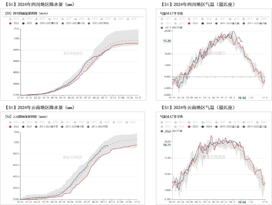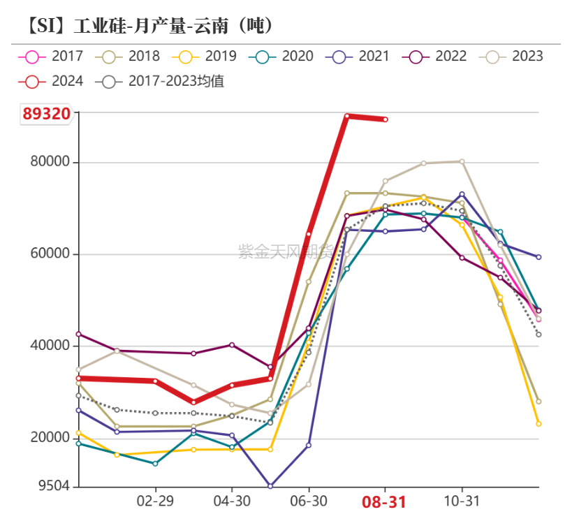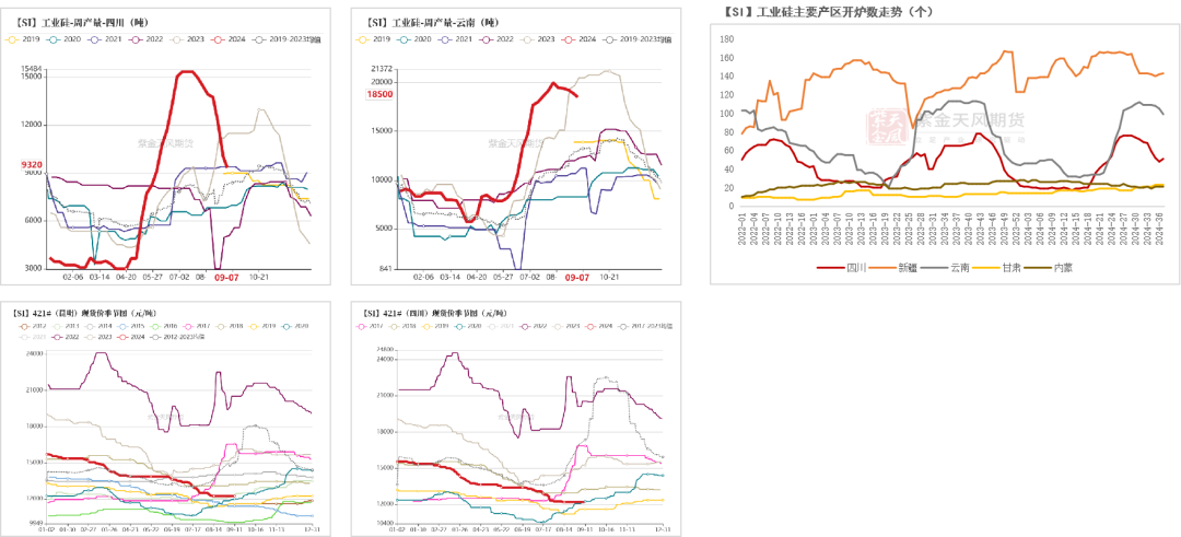 但云南、四川,以及北方主要产区,累计产量同比仍有显著增长,而当前难以预期Q4需求侧出现超预期增量,供给侧强制出清政策的实施同样存在较大不确定性,因此我们认为硅价或继续维持一段时间的震荡走势,结合当前行情及调研情况,预计西南往年6-8个月的开工时间今年或只能维持4个月,提前减产规模或有进一步扩大(参考《20240829云南工业硅厂调研——顺势而为》)。