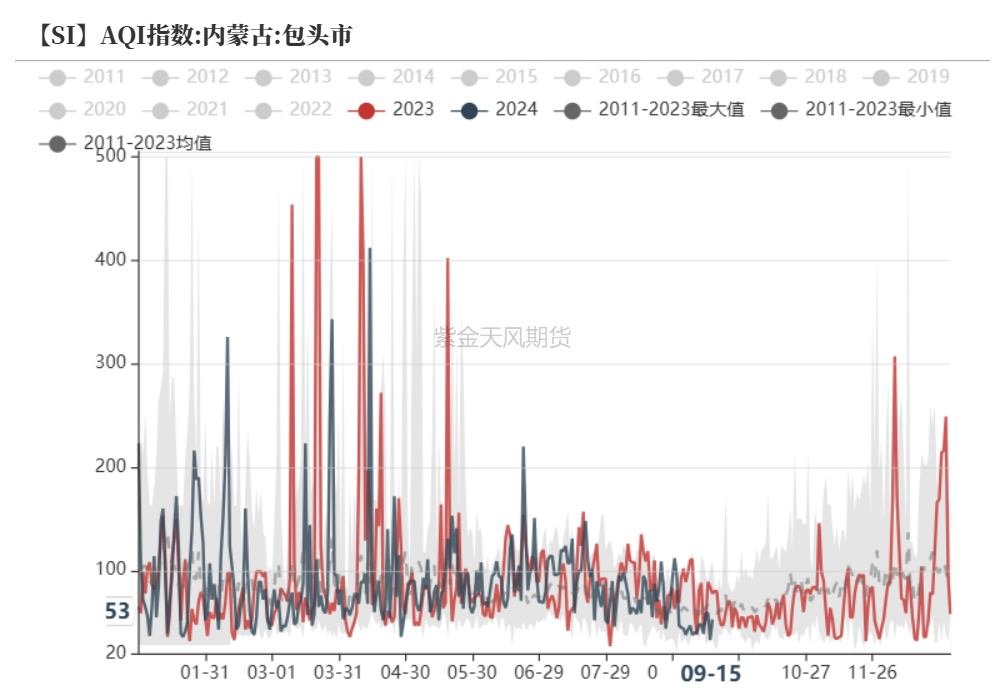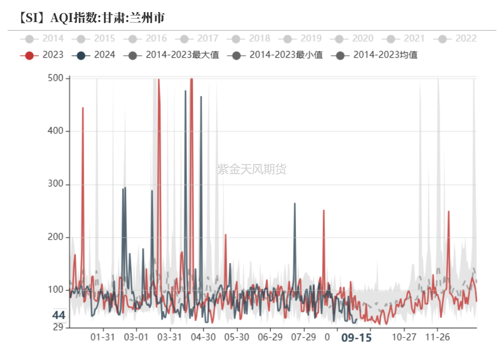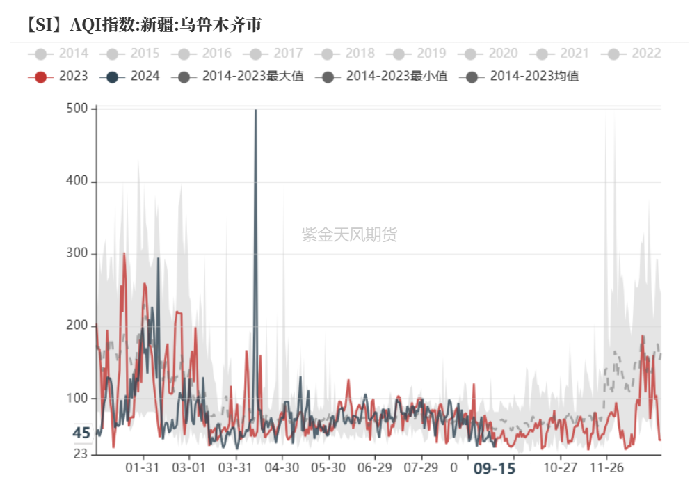 我们选取工业硅部分北方产区的AQI指数做参考,就历史数值来看,Q3一般为全年环境情况最优时期,而Q4至次年Q2,地区环境污染有加剧倾向。