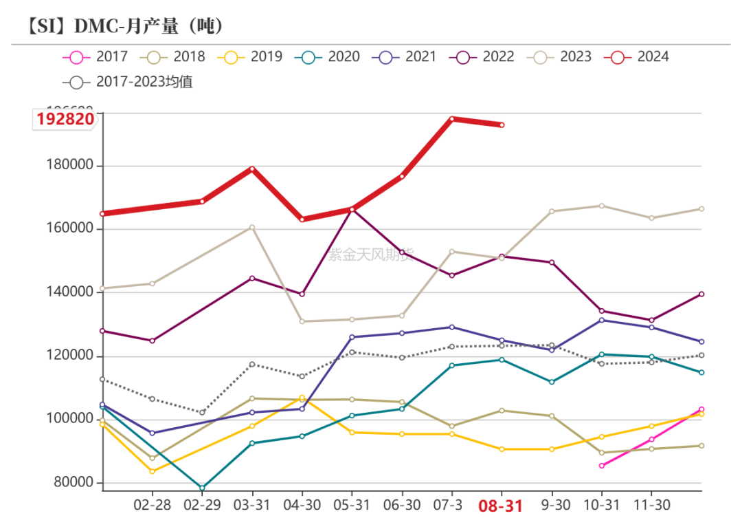 截至2024年8月,DMC累计产量达140.6万吨,累计同比增22.94%。
