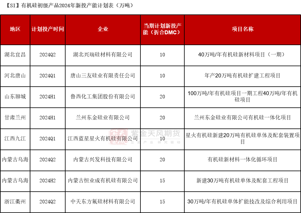总体而言,考虑部分在建、落地可能性较大的新投产能后,预计全年多晶硅、DMC、硅铝合金的耗硅量将分别达到229、113、72万吨。
