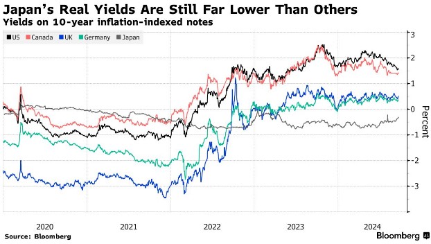 即使在日本央行开始紧缩政策之后,日本整体收益率曲线仍低于该国通胀率。这与美国等其他主要经济体形成鲜明对比(如美国的实际收益率为正值),使这些市场对日本资金极具吸引力。