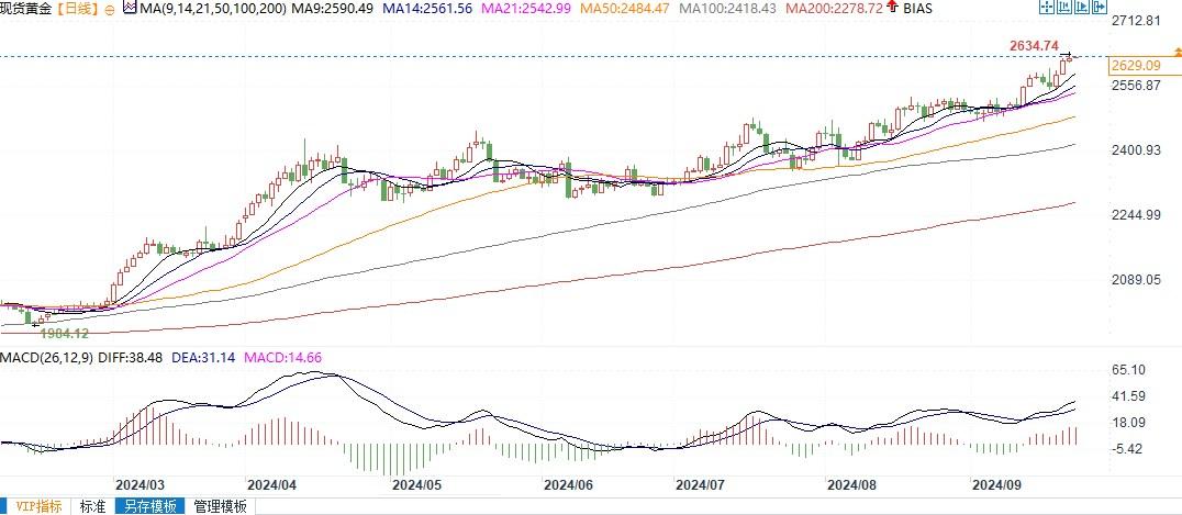 北京时间9月24日10:00,现货黄金报2627.78美元/盎司