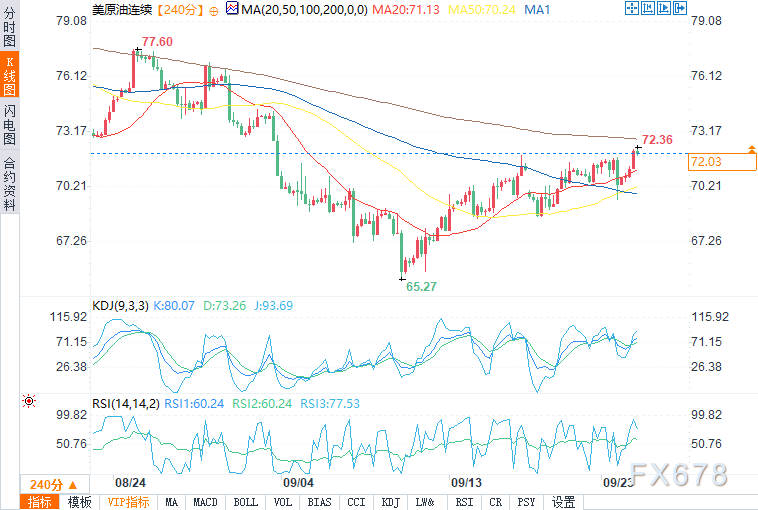 汇通财经APP讯——周二(9月24日)欧盘时段,西德克萨斯中质原油(WTI)盘中接近72美元/桶,布伦特原油盘中报75.36美元/桶,涨幅1.54%。