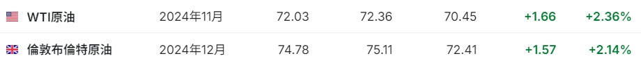 3.截至发稿,WTI原油涨2.36%,报72.03美元/桶。布伦特原油涨2.148%,报74.78美元/桶。