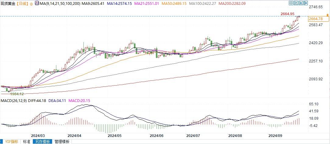 北京时间9月25日10:30,现货黄金报2664.70美元/盎司