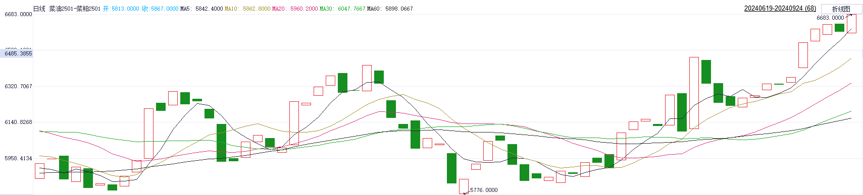 操作策略:多菜油空菜粕01为跨品种套利策略,可适当关注。若差价下破6450取消关注。