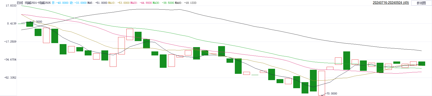 操作策略:空01多05纯碱,为跨期套利交易策略,可适当关注。最新差价-41若上破-22则取消关注。