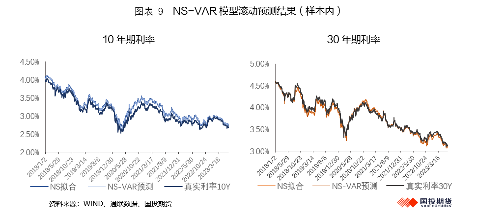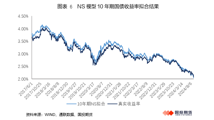 上图表为NS曲线拟合结果,整体来看采用NS方法可以较好的对各期限收益率进行拟合,其中10年期债券的拟合误差显著大于其余期限,通过分析我们发现2023年前NS拟合收益率持续略高于真实收益率,相应使得期间拟合误差偏大,而在2023年后截距项逐渐缩窄,误差显著降低,文章推测这有可能是因为期间10年期国债存在流动性溢价所致。