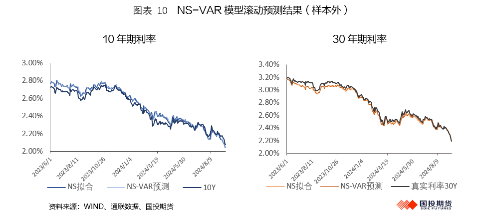 该部分我们基于NS模型构建10年与30年期国债套利策略,首先我们使用1Y、2Y、3Y、5Y、7Y、10Y、15Y、20Y、30Y共9个期限的中债国债即期收益率数据通过NS模型拟合构造收益率曲线,其次我们使用时间序列模型构建动态NS模型,滚动预测10Y与30Y债券收益率的变化方向,之后基于预测方向生成策略信号。数据方面原始收益率数据、模型生成信号频率均为日度,样本期间为2018年初至2024年9月中旬,2023年7月前为样本内,之后为样本外数据。