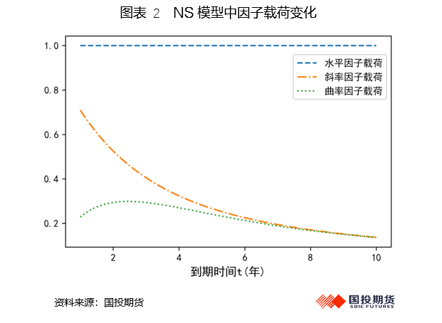 在NS模型中,其中(Beta0,Beta1,Beta2),为影响债券收益率的三个隐含因子,因子载荷为