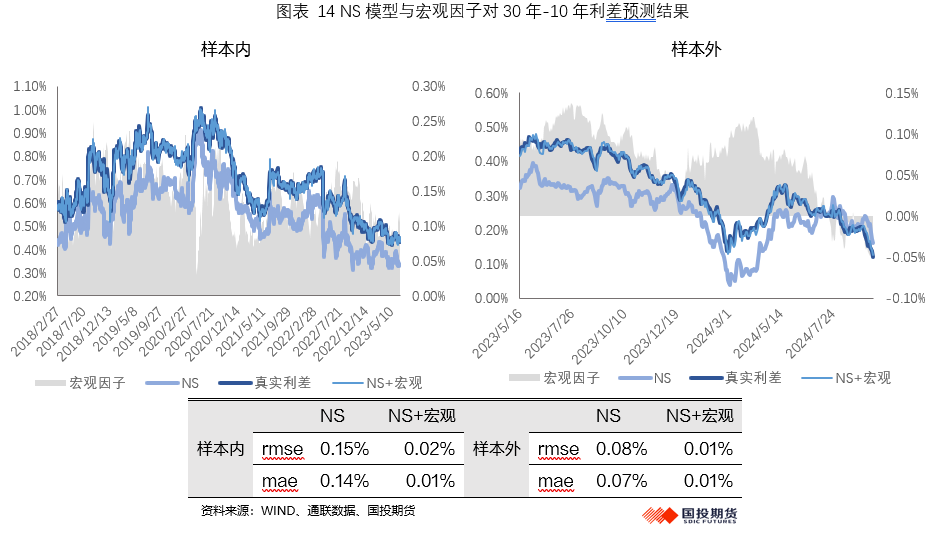 上图表为模型对30Y-10Y国债利差走势的预测结果,加入宏观因素的NS预测模型误差显著低于原始NS模型,说明宏观因素的变动会对利差走势产生一定影响。因此,接下来文章尝试对就宏观因子变动对利差走势影响做进一步分析,结果发现当模型中预测的宏观因子显著走强时,利差未来利差趋于收窄的概率较大,反之则未来利差扩大的概率较大。同时在宏观因子变化显著的区间内,NS模型的预测胜率会略低于其余时期。