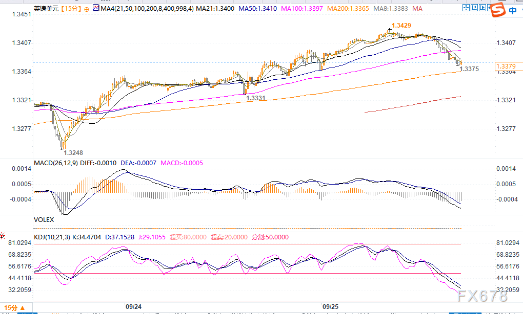 短线来看,15分钟的200均线处在1.3365,可关注能否企稳,若失守则关注1.3350-1.3346支撑,该区域是近日多空持续争夺所在。