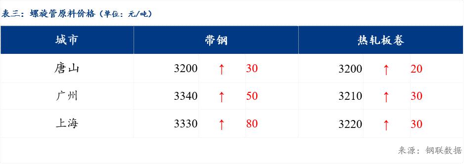 25日全国螺旋管主流城市价格上涨。今日热卷期货主力偏强运行,主流市场原料带钢、热卷价格上涨,螺旋管大多数市场价格跟涨。今日原料价格整体上行,市场明显跟涨,商家成交一般。