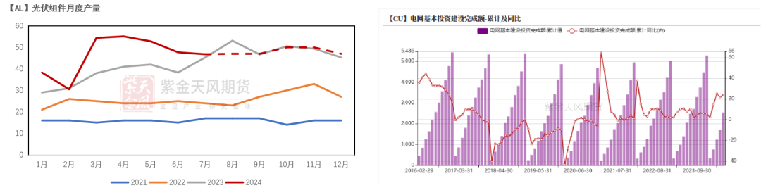 2024年1-6月,电网系统投资额较2023年同期上涨约23.7%,电网投资将成为带动铝需求消费的另一驱动因素,若以线性外推的角度来看,我们认为2024年电网板块铝需求约为440万吨。