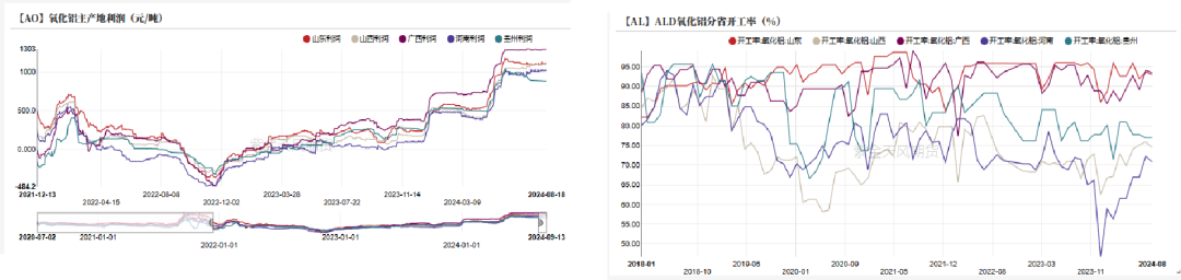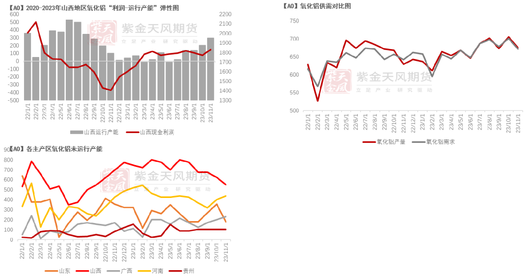 今年1-3季度氧化铝的生产侧呈现出两个特点:1、各主要产地氧化铝利润均处于历史位置;2、山西、河南两地氧化铝产能运行率较往年偏低;