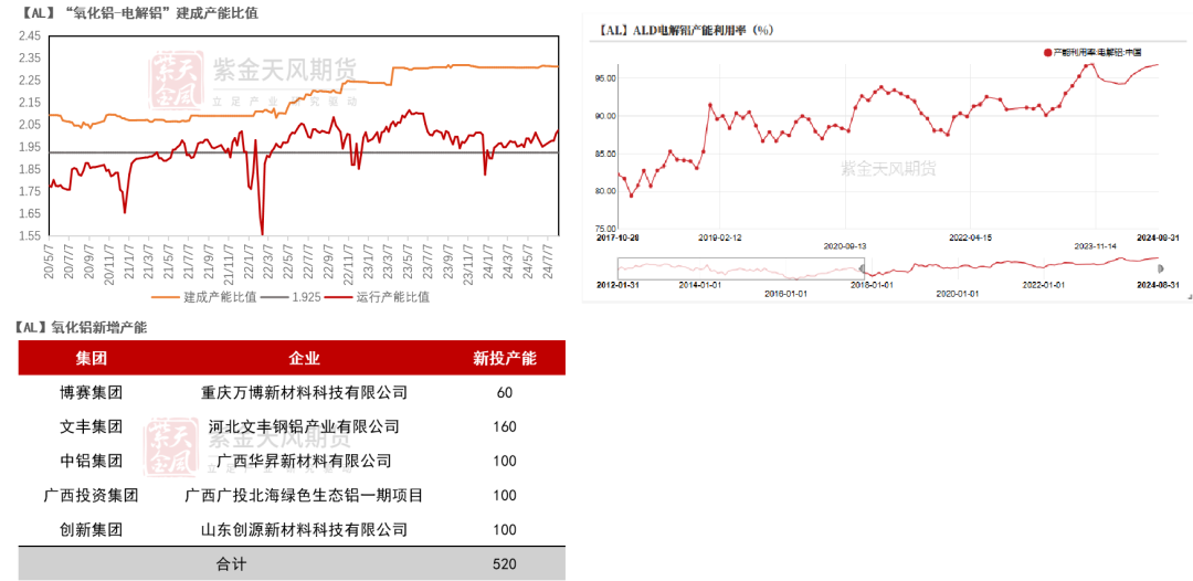我们预计2024年国内原铝产量约为4285万吨,累计同比增长3.12%。