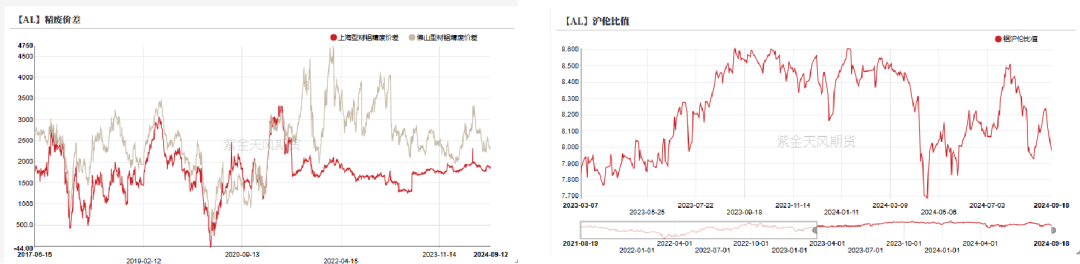 横向来看,无论是国内库存的去化抑或现货价格的反弹均弱于海外伦铝价格的表消