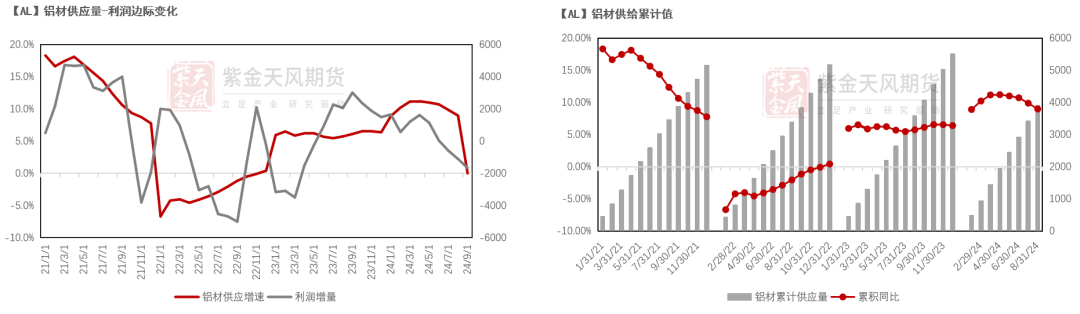 从累计供应量来看,8月全口径铝材供应量的累计同比亦从9.87%下滑至8.97%,这反应出来,铝市场正通过价格调节当前的铝元素的边际供应量以达到市场的再平衡。