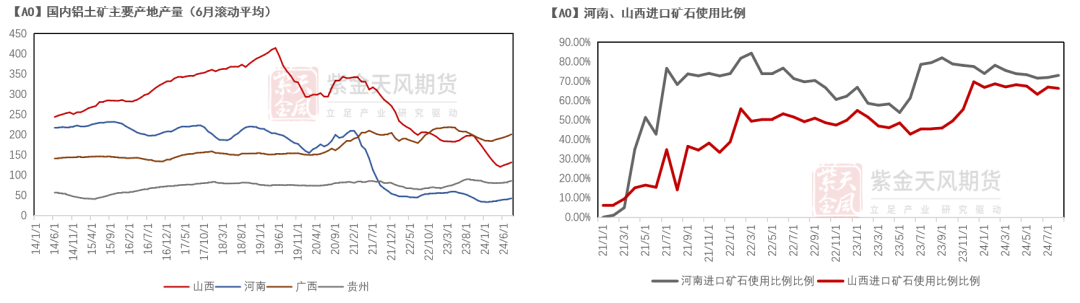 而目前氧化铝价格快速上涨的背后则是矿石供应限制下的氧化铝市场利润定价的失效,自2023年6月以来,在河南、山西两次的矿山整顿后,两地大量矿山持续处于停产状态加之2024年1-2季度新增矿石较少,这使得氧化铝闲置产能难以在高利润的刺激下复产;