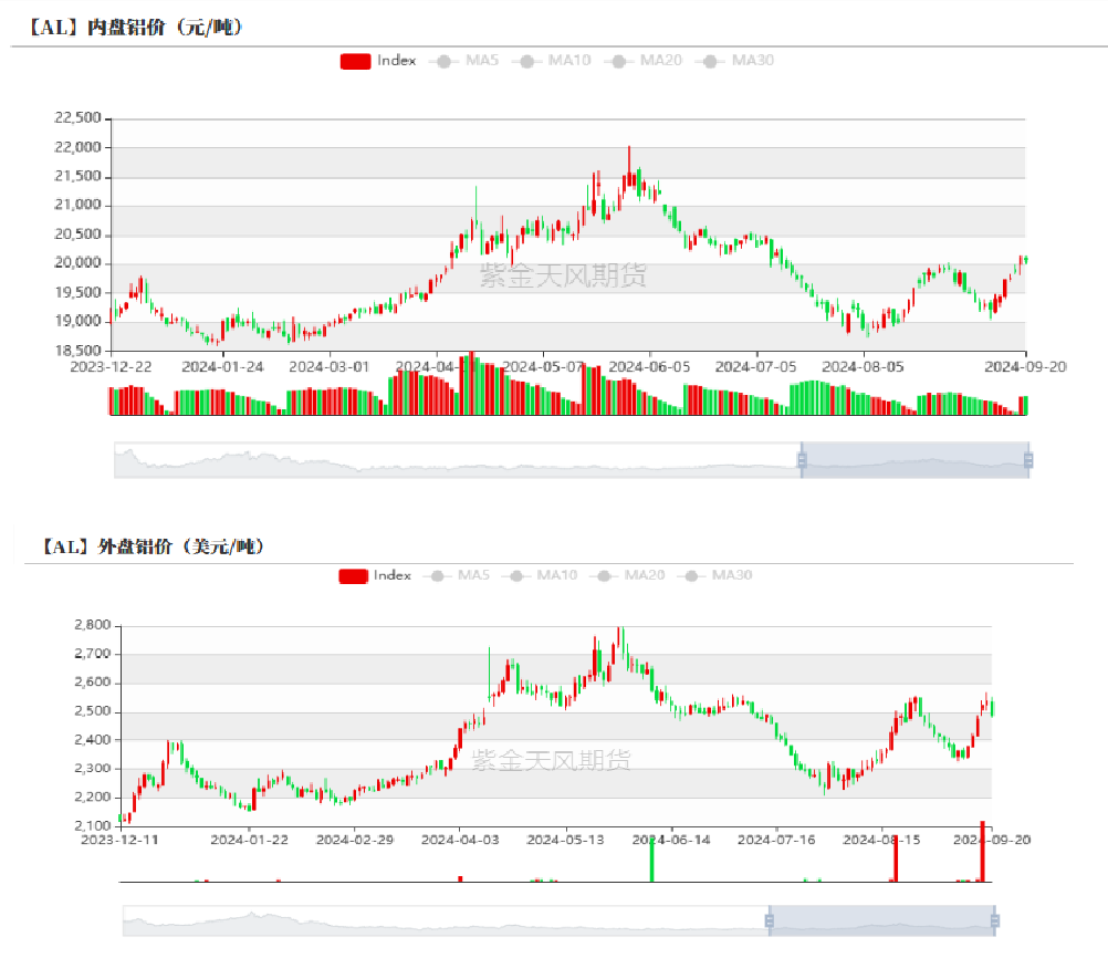 今年三季度的铝价运行目前存在着较为明显的内外分化的特质,且较去年同期亦有较大的变化,其主要体现为以下的两点: