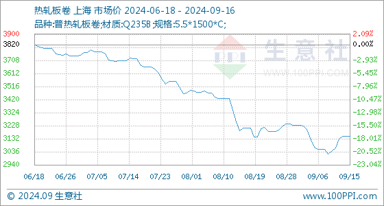 9月16日生意社热轧板卷基准价为3152.00元/吨