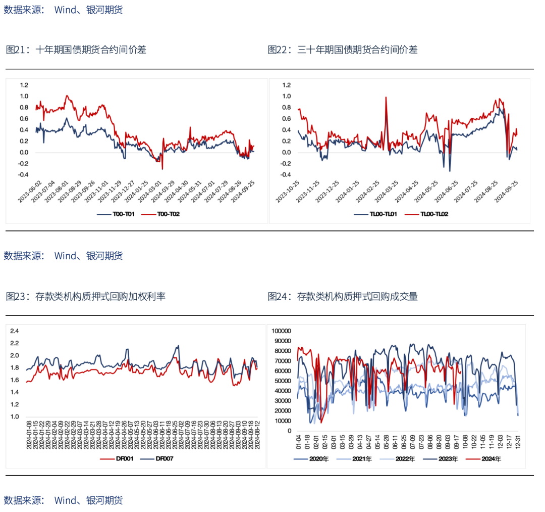 短期内,预计期债盘面仍将受到风险资产表现的扰动,但考虑到财政落地的窗口期在10月重要会议前后,在此之前,预计债市趋势仍难反转,单边建议可重回低多思路。套利方面,降准、降息后,资金面预期改善,叠加央行“买短卖长“操作可能继续,建议可考虑择机参与做陡曲线交易。此外,IRR偏高的情况下,建议继续关注T、TF合约潜在的期现正套机会。