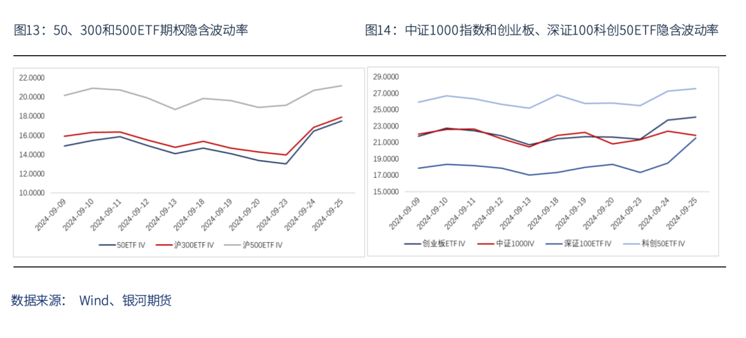 期权方面,多数期权标的冲高回落,标的日内震荡不小,叠加ETF期权9月合约到期日多数期权品种成交量维持高位。隐波方面,多数期权隐波日内冲高回落。标的与隐波走势维持正相关。