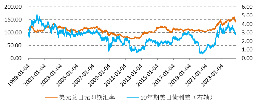 除了经济增长前景存在不确定性之外,相对通胀水平也不利于日元升值。通胀率较低的国家表现出货币价值上升,而通胀较高的国家通常会看到其货币贬值,并且通常伴随着更高的利率。从通胀的角度看日本通胀上行压力大于美国,这不利于日元兑美元升值。