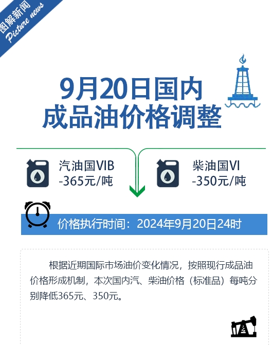 国家发改委公告,自2024年9月20日24时起,国内汽、柴油价格(标准品)每吨均降低365元和350元。用92号汽油加满50升的油箱将少花14.5元。今年以来,国内成品油零售限价已经历19轮调整,分别为7次上调,8次下调,4次搁浅。合并计算后,标准汽油累计下调215元/吨,标准柴油累计下调205元/吨。