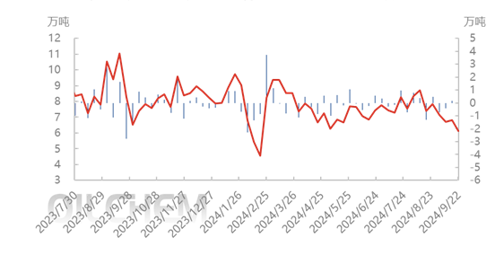 本周2024年第三批低硫船用燃料油出口配额仅下发100万,同比跌66.67%,不及预期,将导致国产低硫保税船燃资源供应偏紧,利空低硫燃料油加注量,燃料油出口量或继续收缩。