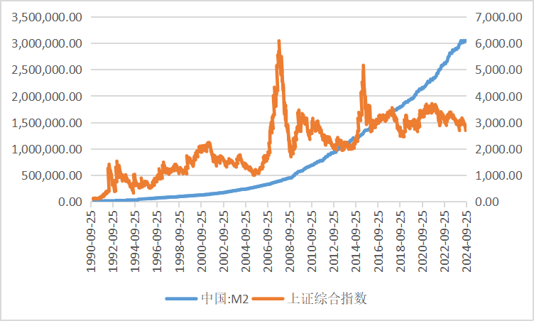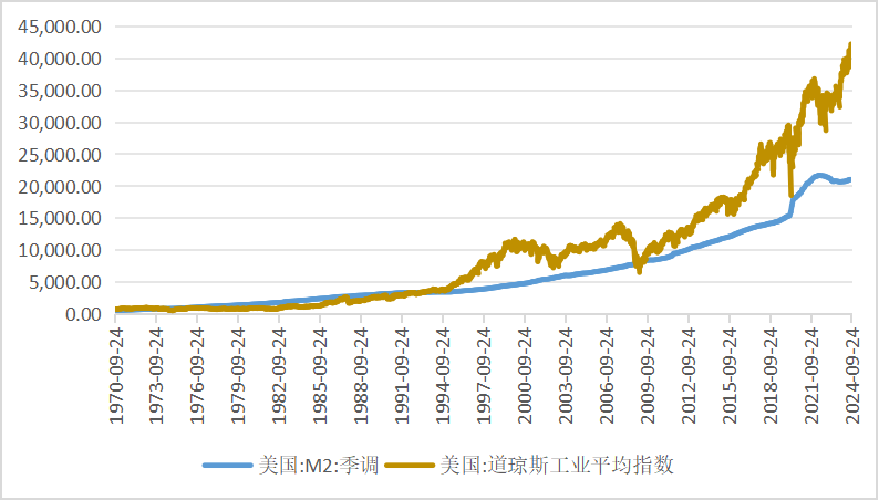 对于成熟的资本市场而言指数的增长和流动性的增长是趋同的,尤其是在流动性增长高于通货膨胀增长的情况下,定然存在财富管理的资产充当储蓄和增值的作用。