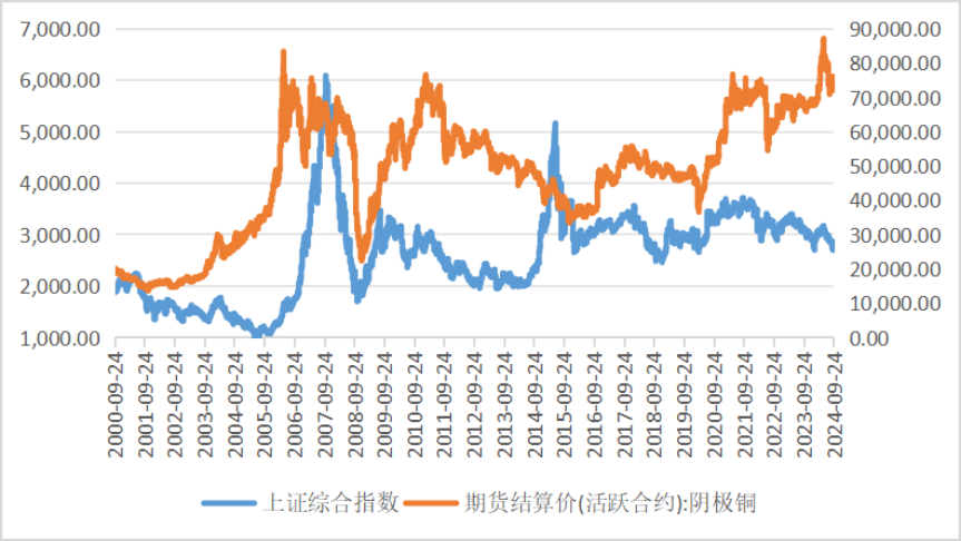 在沪铜牛市周期,往往也是利多股市的周期,沪铜由于受宏观定价预期指引较强相对灵敏,股市则需要在现实经济活动改善后跟随。