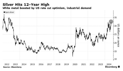 由于美联储进一步降息的预期帮助提振了贵金属,白银价格触及2012年以来的最高水平,黄金价格再攀新高。