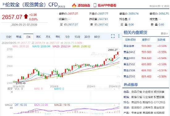 9月25日,现货黄金一度站上2660美元/盎司,再创历史新高,今年迄今累涨29%。