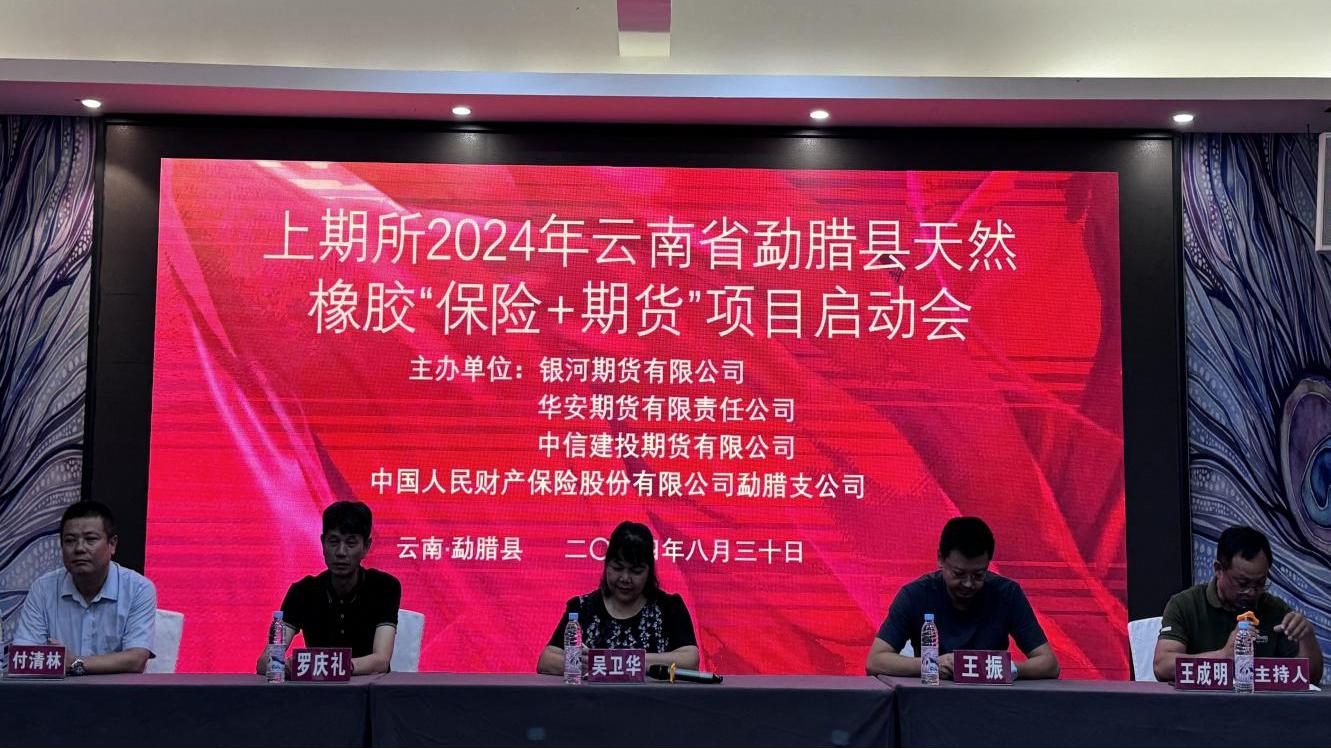 近日,银河期货联合人保财险勐腊支公司在云南省西双版纳州勐腊县成功举办金融知识培训会,启动2024年上期所天然橡胶“保险+期货”项目。本次会议同时邀请到了勐腊县财政局、县政协、县农业农村局等相关部门以及农垦集团、胶农代表参会,聚焦“保险+期货”发挥专业优势,创新赋能乡村产业振兴,探讨天然橡胶收入保险的运作模式,宣传“保险+期货”对天然橡胶产业链的价值,进一步推动“保险+期货”成为助力乡村振兴的有效途径。