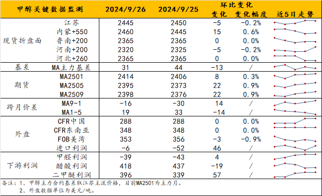 逻辑:截止9.26,港口库存为102.1万吨(-7.5),但提振作用有限,期价带动港口价格反弹后再回落。基差还是在01+25左右,预计得有较持续的去库才能让基差继续走高,但高进口量仍会干扰去库进程。内地方面,局部价格略有企稳,但银十前的低价反弹动力不足。观点上,短线估值修复后,基本面驱动不足,反弹空;若发现港口无法去库至100万吨以下,则视为无效去库,不仅单边中线偏空对待,月差上择机寻MA1-5反套机会。