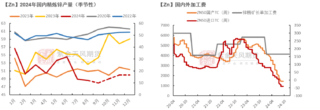 在原料供应短缺、炼厂产能释放和库存补充不足的背景下,锌精矿TC出现巨幅下行,跌至历史低位。超低加工费导致炼厂被迫持续减产。