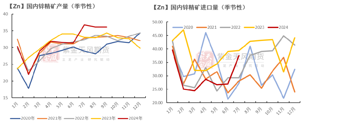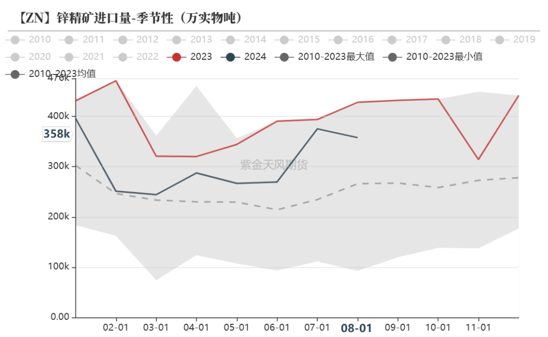 预计24年全年锌精矿进口量或同比减少20%至380万实物吨。