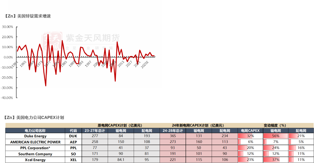 24年中国汽车市场增速小幅放缓,交运板块耗锌量增速下调2.5%,预计24年交运板块耗锌增速为6%。