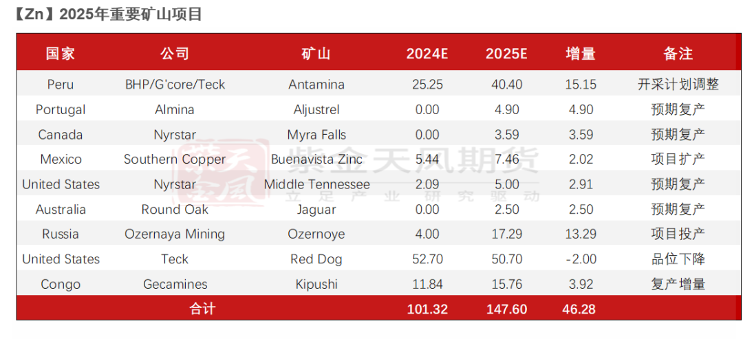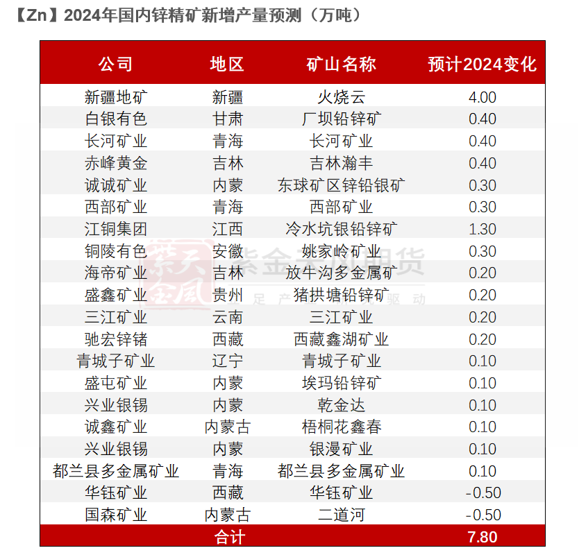 因锌价下跌带来减量17万吨,因品位下行带来减量约4万吨,随着锌价走高,25年或能看到更多矿山复产。